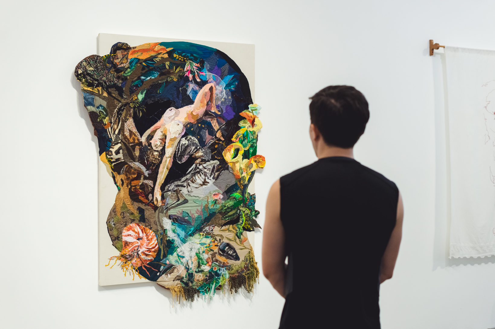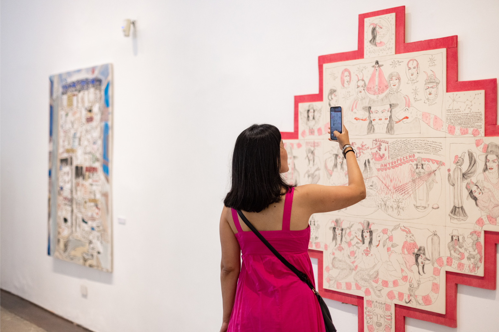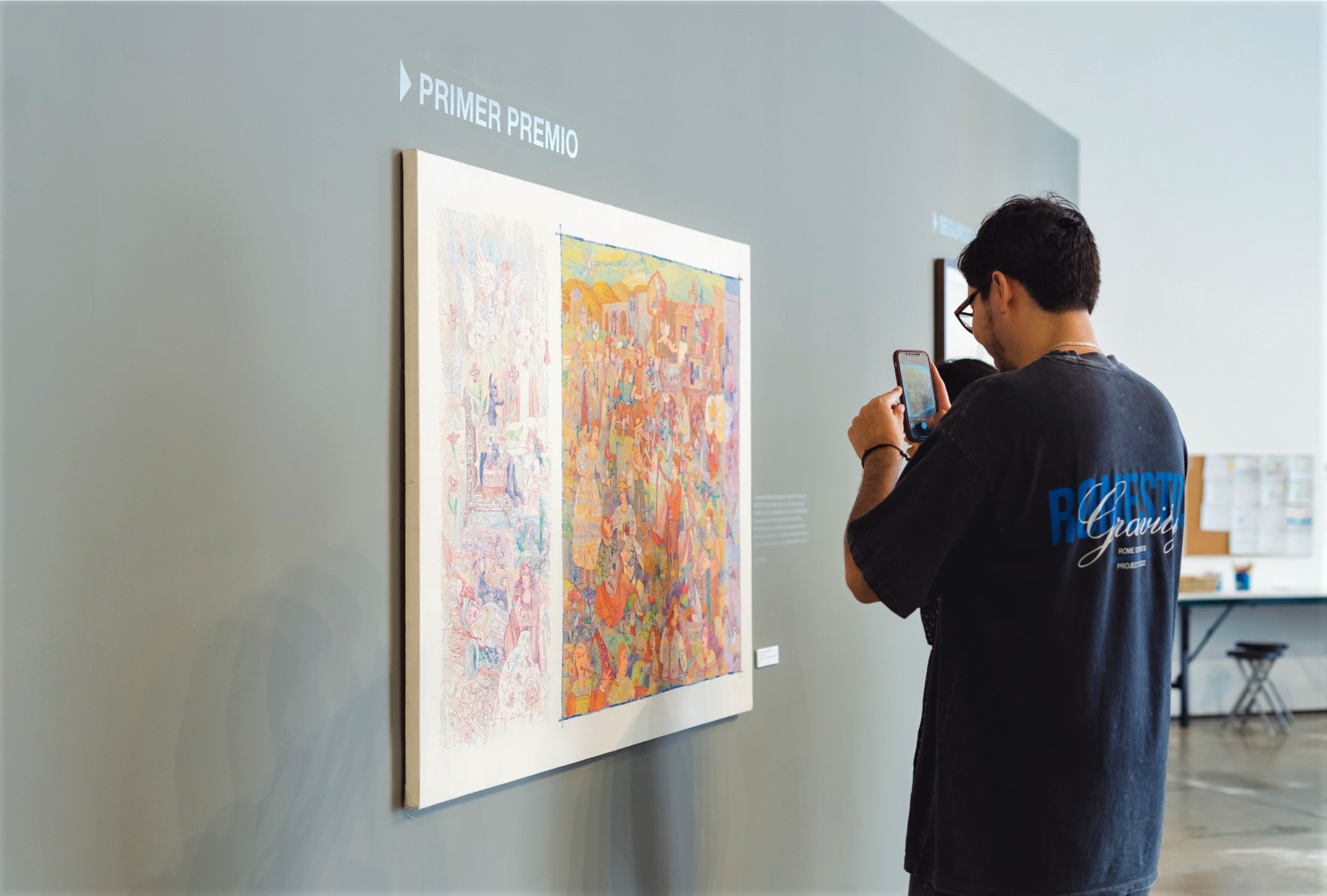 En esta décimo tercera edición, la obra “Historias de sonata en el reyno Viringo” del artista Felipe Coaquira fue declarada ganadora del primer puesto del certamen. Esta pintura da un giro inesperado a la iconografía pictórica colonial, pues la lleva a la técnica del bordado a máquina, utilizada en la confección de vestimenta tradicional. En el concepto se puede ver una transposición de la religiosidad católica con las creencias prehispánicas: las escenas representadas son protagonizadas, en lugar de santos católicos, por el perro viringo. El término horror vacui o, más coloquialmente, “horror al vacío”, característico del arte barroco, está resuelto en los bordados de Coaquira, sin dejar dudas de su línea narrativa, cuya lectura está repleta de un exquisito grafismo y sutil cromatismo. Trabajos como el suyo van tendiendo una red de significados que nos hablan del Perú como “microbiología” en constante movimiento, dándonos los elementos para analizar la composición del país y de quiénes y cómo lo habitan