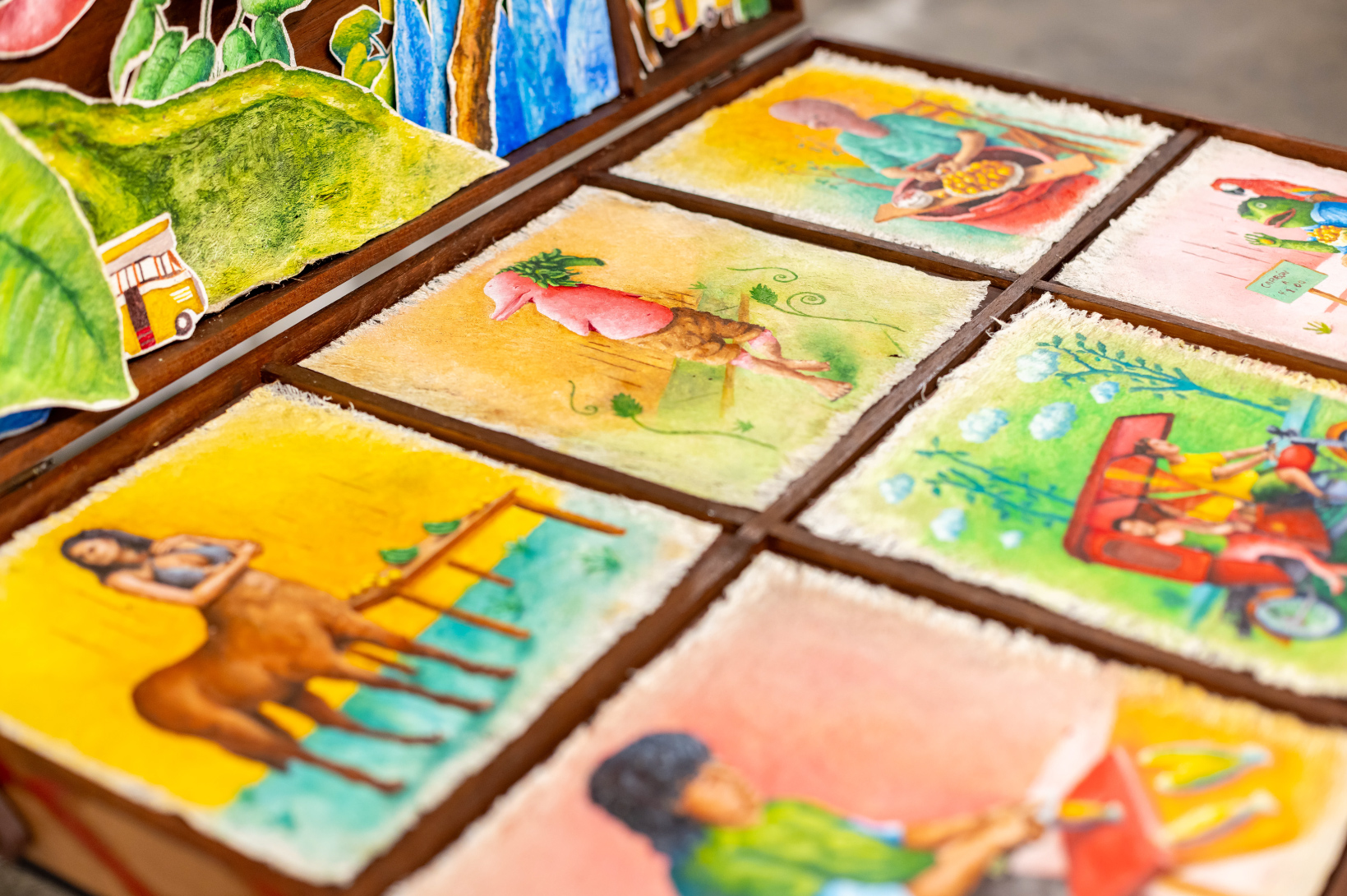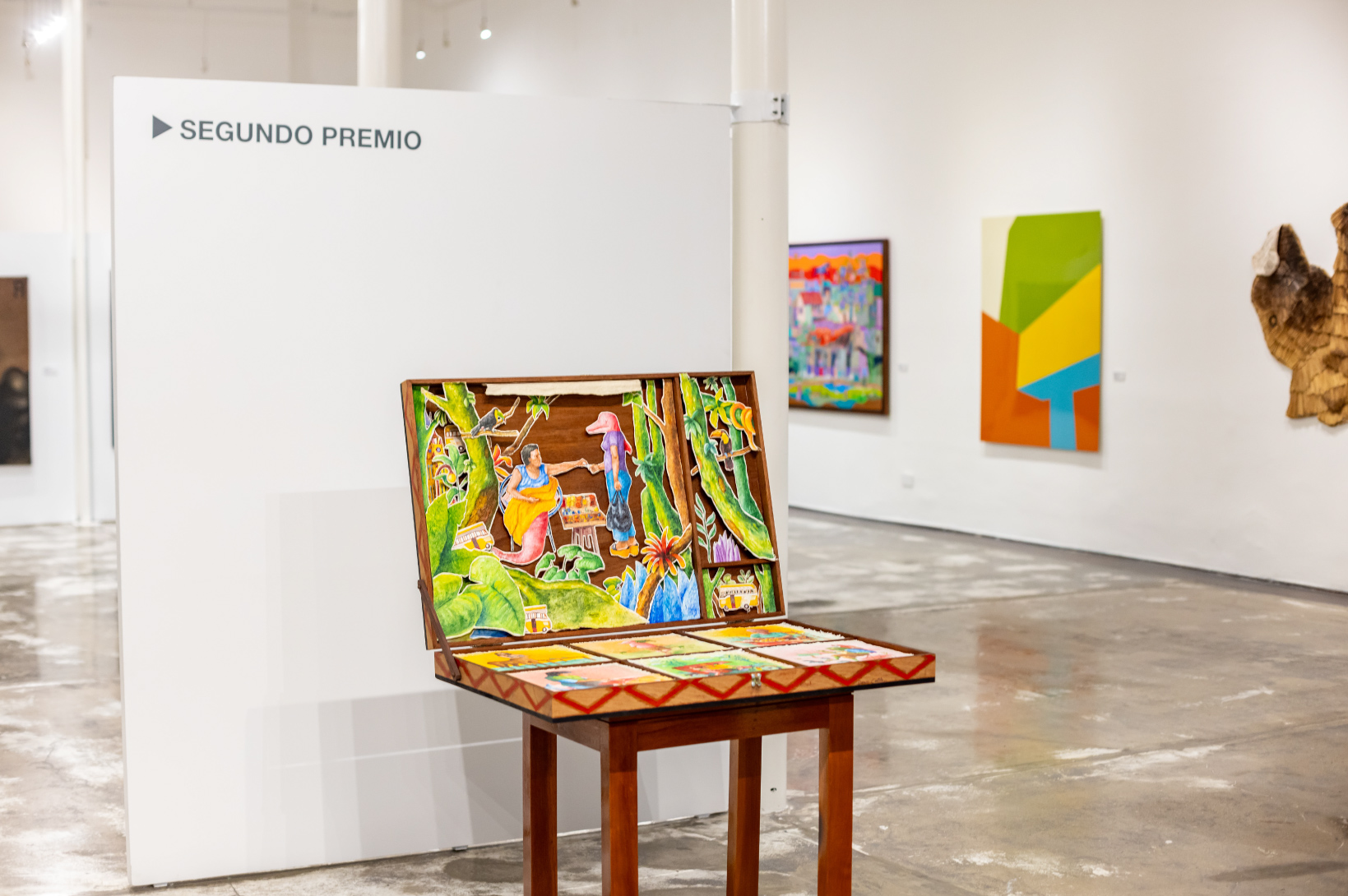 Darwin Castillo, segundo premio con La vida entre demonios, combina hábilmente técnica y exploración social. Su obra, una caja-maleta, establece un diálogo único con personajes del oriente peruano, distanciándose de la iconografía amazónica convencional. La originalidad de su obra se manifiesta en un retablo portátil que simula una maleta, creando un dispositivo para el intercambio ambulante en las esquinas de Iquitos, abordando mitos urbanos y dinámicas cotidianas. Desde una perspectiva personal, Castillo filtra su biografía, construyendo un mundo íntimo que cabe en una caja de golosinas. La pieza explora la migración y herencia cultural, y refleja la frescura de un artista emergente.